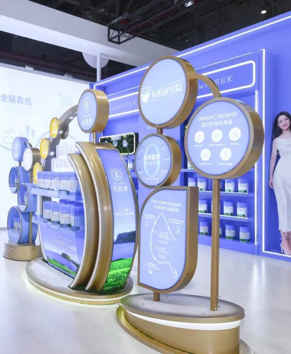 貝拉米作為國際高端品牌,在業(yè)內(nèi)享有盛譽。設(shè)計團隊將“綠色”、“有機”、“健康”以細節(jié)設(shè)計為依托,充斥在展臺的每個角落,強化貝拉米“有機食品專家”的品牌定位。